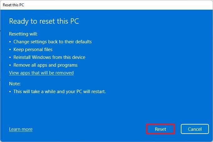 Once you complete the steps, the computer will reset to the factory settings preserving your files.